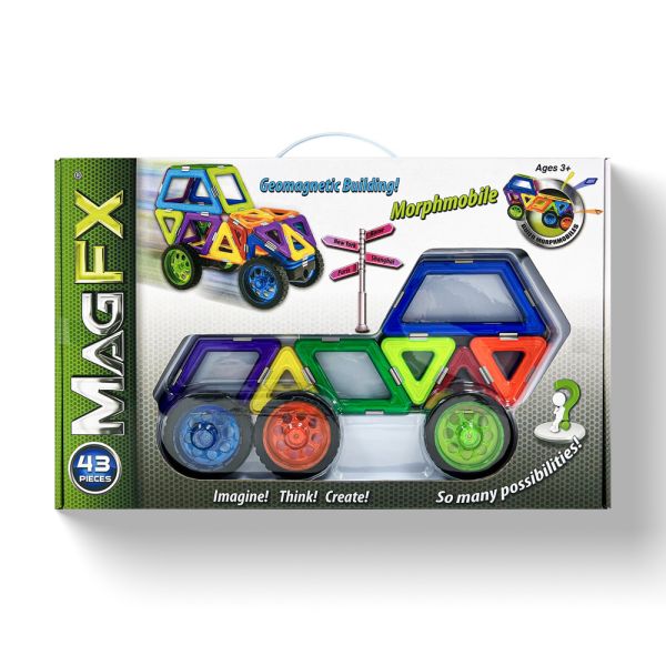 There are a total of 43 pieces in the set, 5 shapes and 7 colors of magnetic pieces, which can be assembled into 200+shapes!